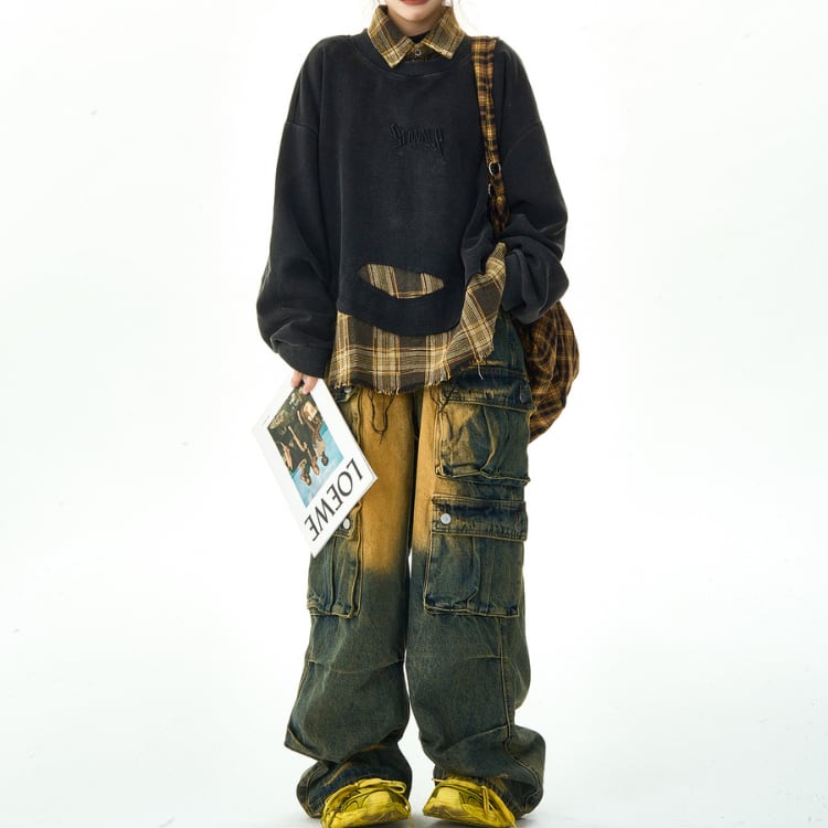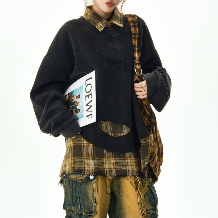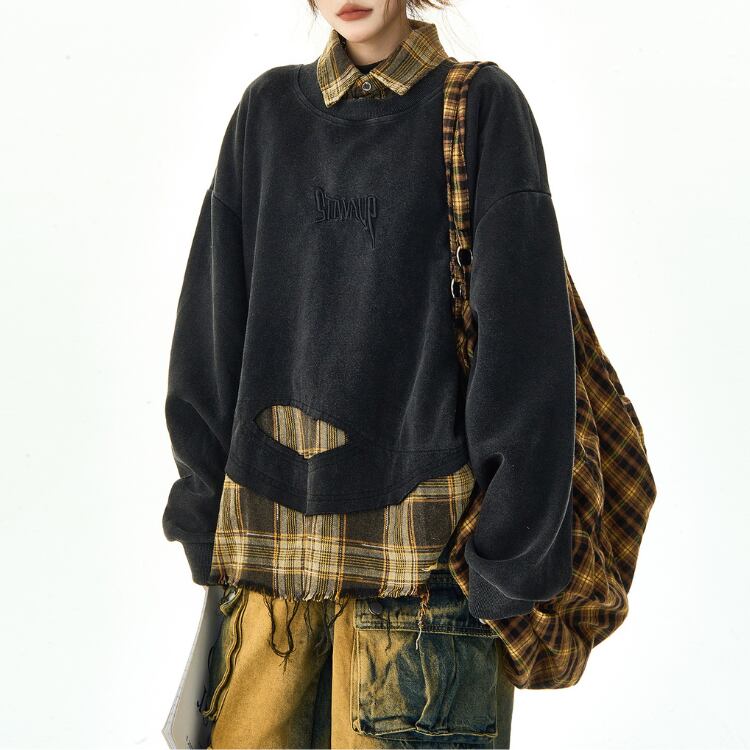 レイヤード風 クロップド スウェットシャツ ◆2col L00001