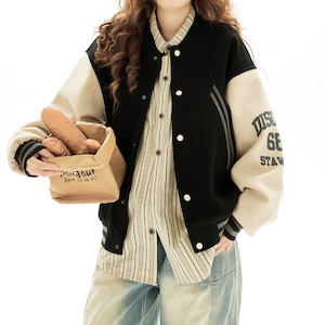 ボタンフロント オーバーサイズ スタジアムジャケット L00004