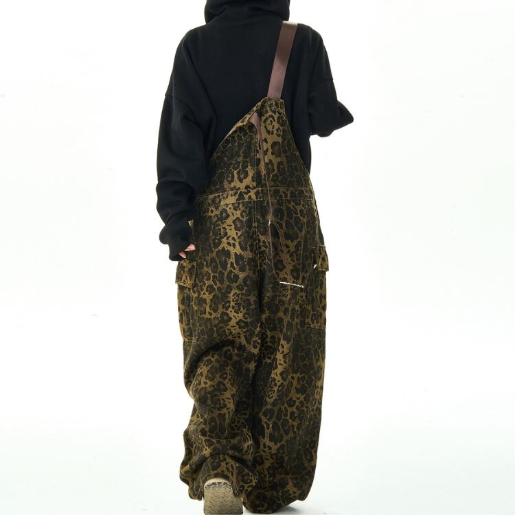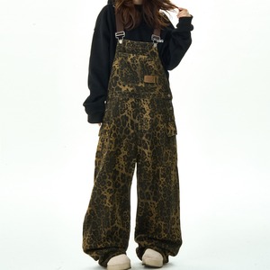 大胆な柄が目を引くオーバーオール。ゆったりとしたワイドシルエットで、リラックスした着心地を提供します。両サイドのパッチポケットは、デザインのアクセントとしてだけでなく、機能性も兼ね備えています。普段使いはもちろん、ちょっとしたお出かけにも活躍するアイテムです。
