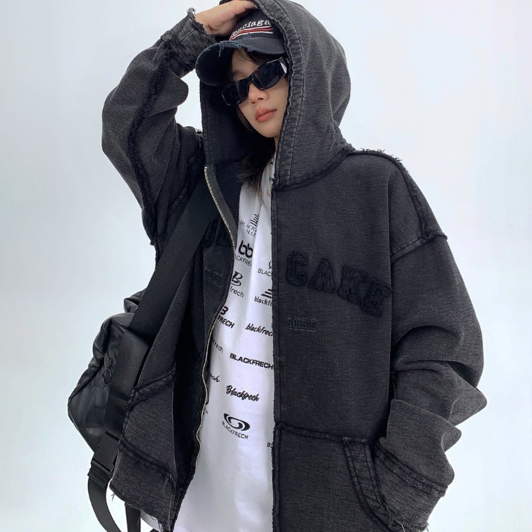 カジュアルに着こなせる、ジップアップオーバーサイズパーカー。