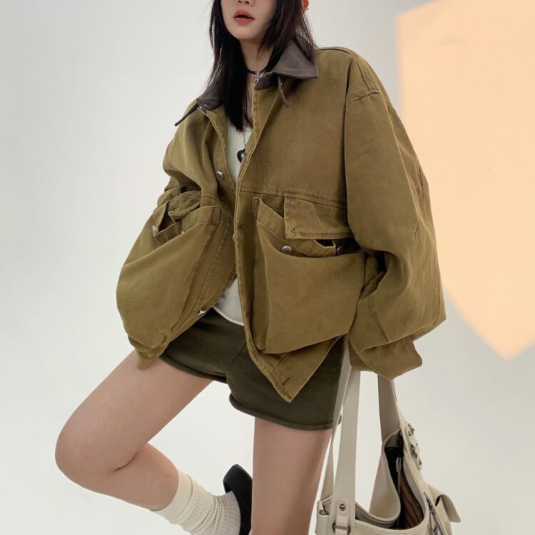パッチポケット シャツカラーオーバーサイズ カバーオール ◆2col L00021
