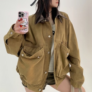 ヒップ丈のオーバーサイズカバーオールは、カジュアルな着こなしに最適。シャツカラーがきちんと感をプラスし、大きなパッチポケットがアクセントになっています。ゆったりとしたシルエットで動きやすく、普段使いはもちろん、アウトドアシーンにもおすすめです。