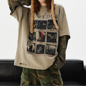 長袖 ヒップ プリント柄 オーバーサイズ Tシャツ L00027