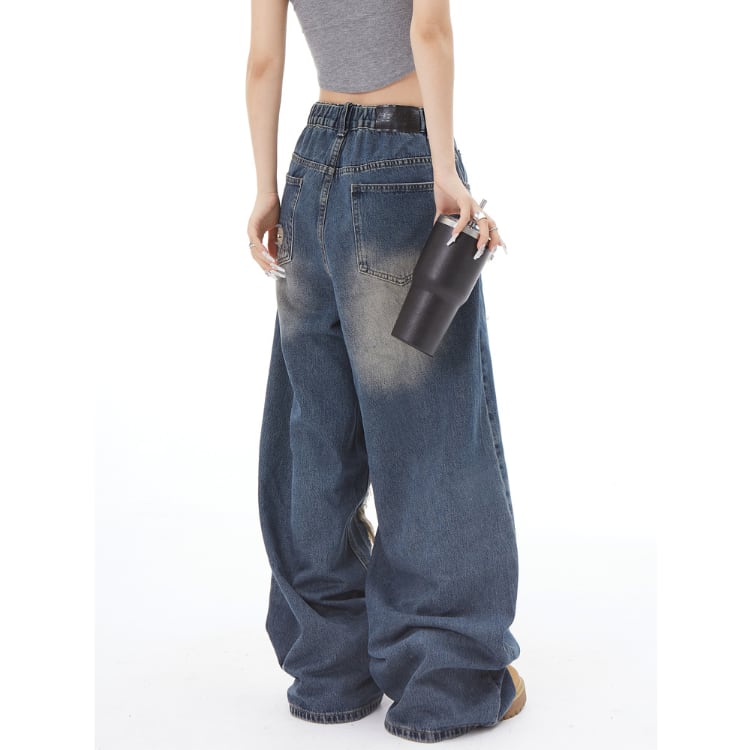 ダメージ加工 ワイド フルレングス デニムパンツ ◆2col L00035
