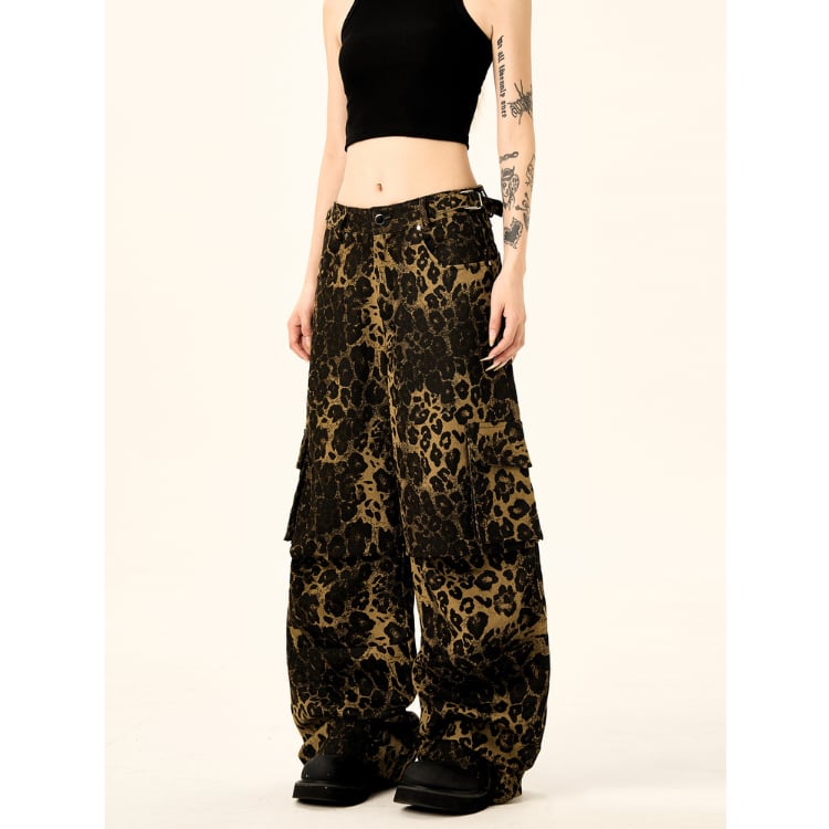 大胆なレオパード柄が目を引くワイドパンツ。フルレングスで、リラックス感のあるシルエットが魅力です。普段のカジュアルスタイルに取り入れるだけで、エッジの効いた着こなしに。シンプルなトップスと合わせれば、柄が際立ち、コーディネートの主役になります。
