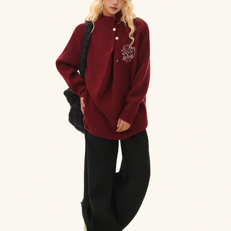 ハーフボタン オープンカラー 長袖 ニットポロシャツ ◆3col L00204