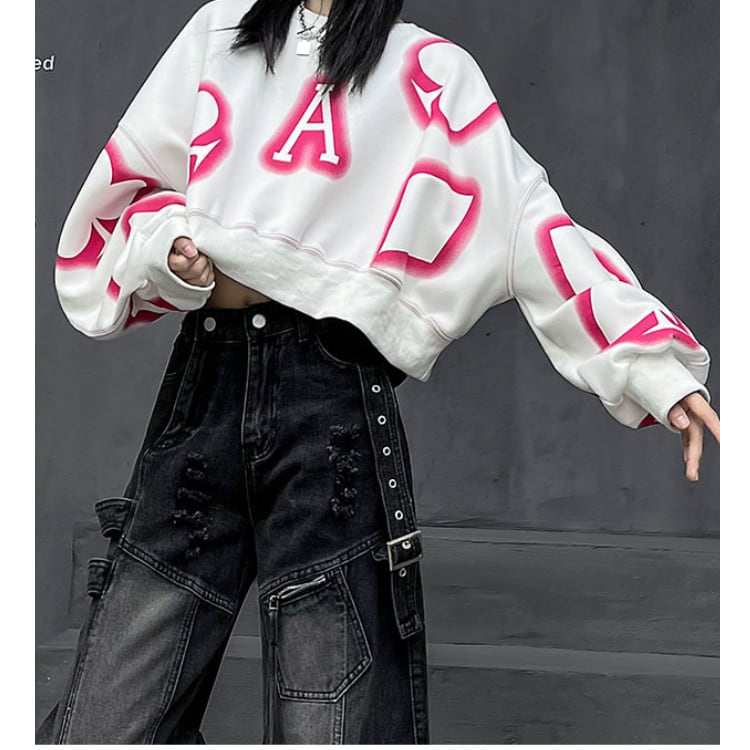 長袖 クロップド オーバーサイズ スウェット ◆2col L00046