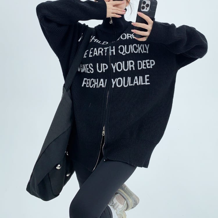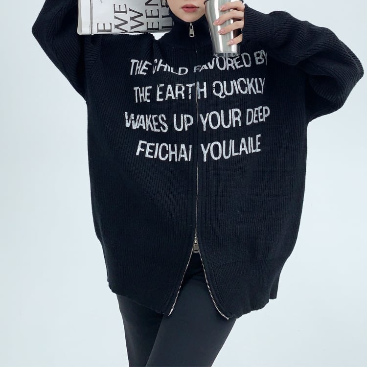 ジップアップ 長袖 ヒップ ニットカーディガン ◆2col L00049