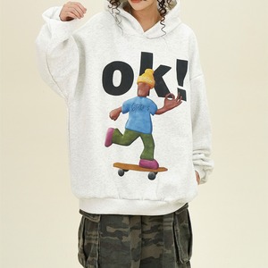 プリント 長袖 オーバーサイズ スウェットフーディ ◆2col L00063