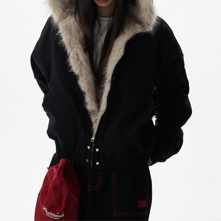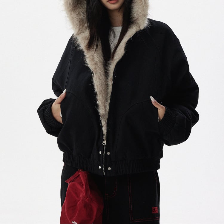 ファー フード付き 腰 ショート ジャケット ◆2col L00080