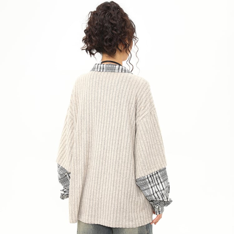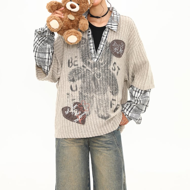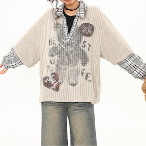 オープンカラー 半袖 パッチ オーバーサイズ ニットポロシャツ ◆2col L00088