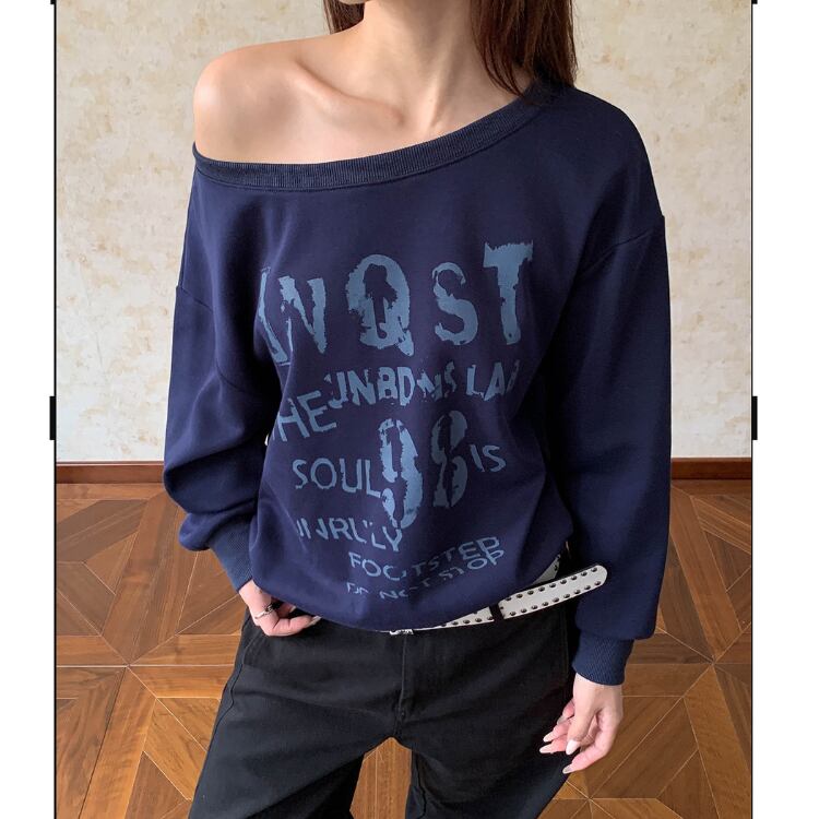 プリント 長袖 ドロップショルダー スウェット ◆2col L00095