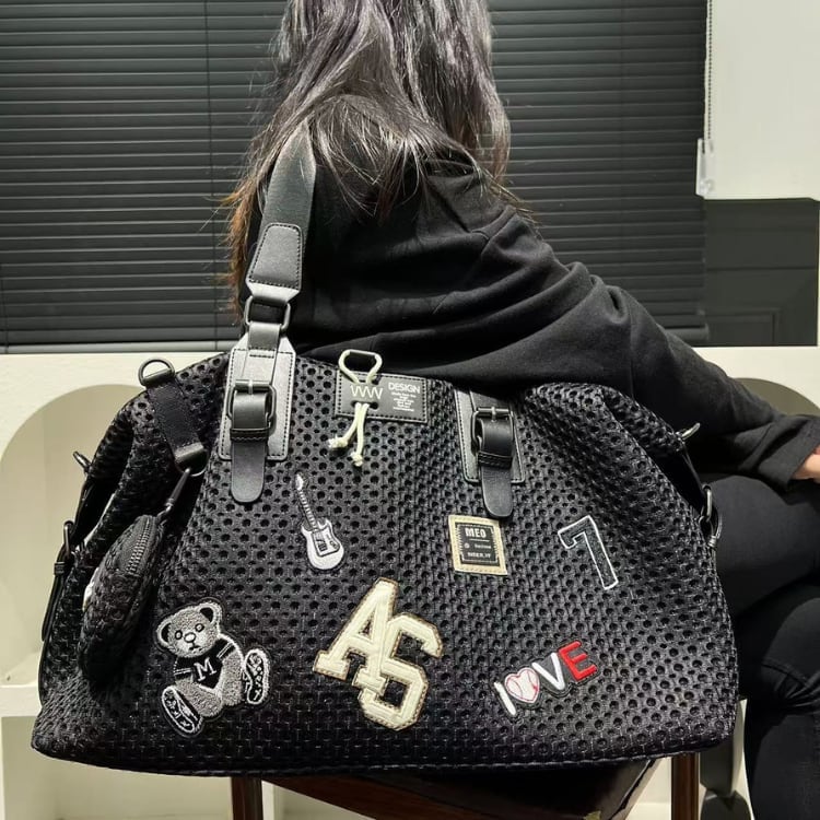 パッチ装飾 2WAY メッシュ ボストンバッグ L00257