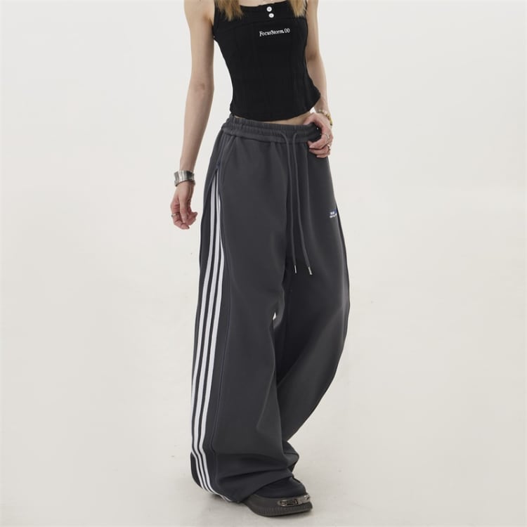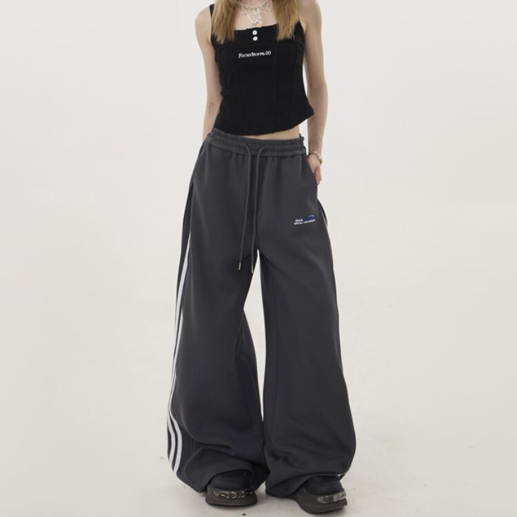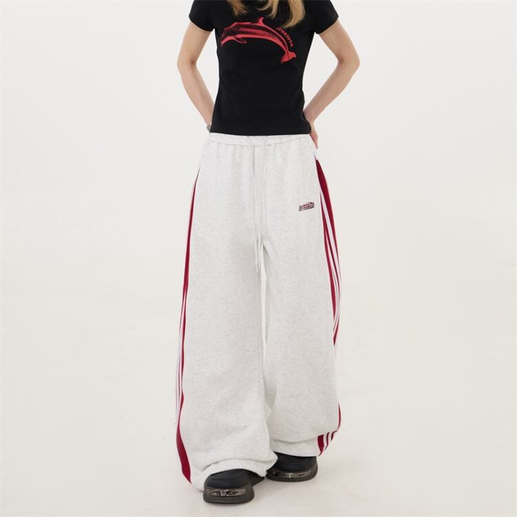リラックスしたシルエットで、快適な着心地のワイドレッグパンツ。股上深めのデザインで、安心感のある穿き心地です。サイドのラインがアクセントになり、カジュアルながらもスタイリッシュな印象を与えます。普段使いはもちろん、アクティブなシーンにもおすすめです。