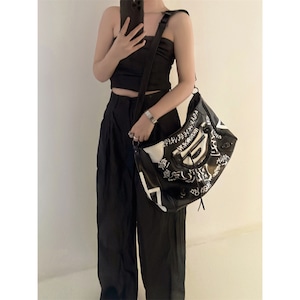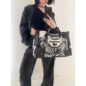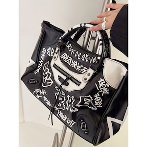 グラフィック トートハンドル ジッパー フェイクレザー バッグ L00116