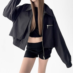 ジップアップ オーバーサイズ ショート ジャケット ◆2col L00125