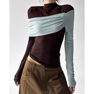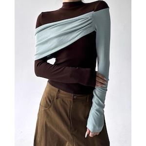 ドレープ アシンメトリー 長袖 ショート丈 カットソー ◆2col L00130