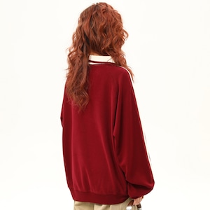 ハーフジップ ライン入り 長袖 ドルマンスリーブ スウェット ◆3col L00133