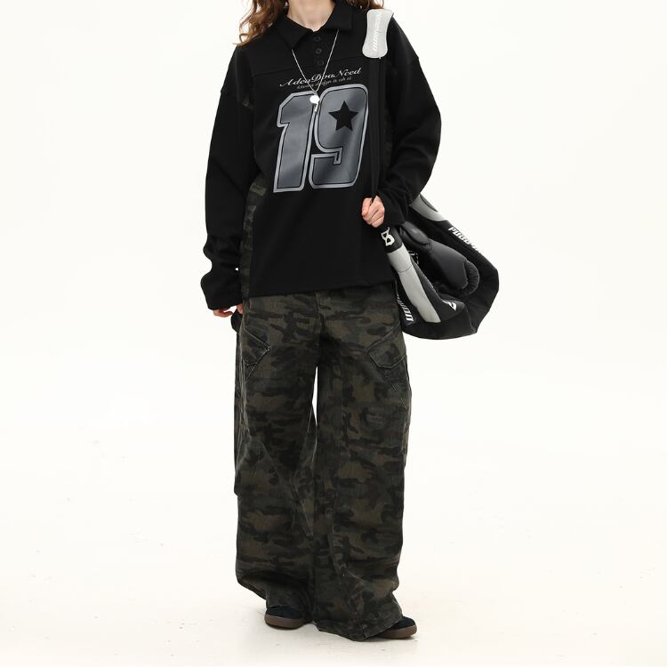 ゆったりとしたシルエットが魅力的な長袖ポロシャツ。