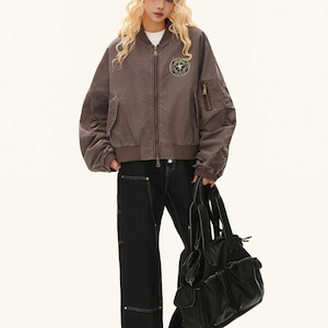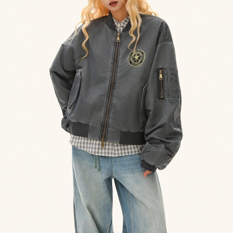 クロップド丈でスタイルアップ効果のあるブルゾンジャケット。