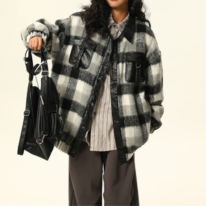 パッチポケット オープンカラー チェック柄 ジャケット ◆2col L00151
