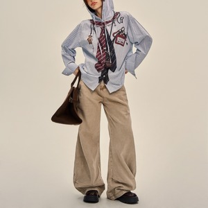 フード付き チェック柄 オーバーサイズ シャツ L00202