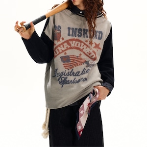 プリント オーバーサイズ ヒップ丈 ニット ◆2col L00200