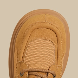 レースアップデザインが特徴的な厚底プラットフォームブーツ。