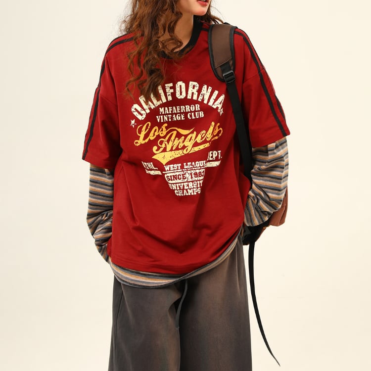 ドロップショルダー グラフィック Tシャツ ◆2col L00156