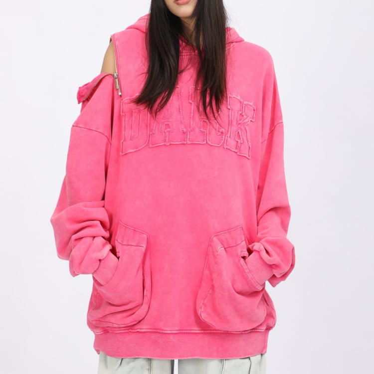 トレンドの肩開きデザインを取り入れた長袖プルオーバーパーカー。