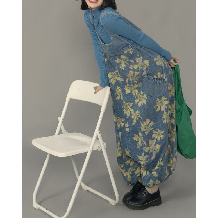 パッチポケット 花柄 ワイド サロペットパンツ L00272