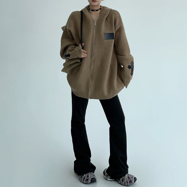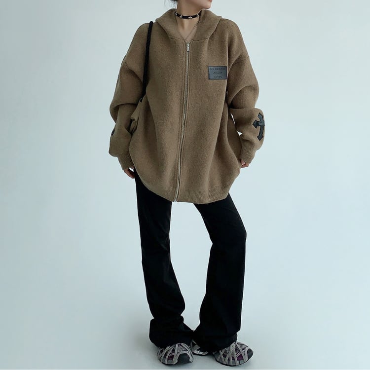 ゆったりとしたシルエットが魅力のジップアップニットパーカー。