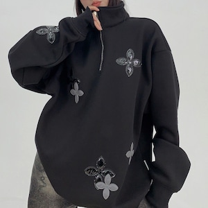 シンプルなデザインの中に、さりげない花柄の刺繍が光るスウェット。