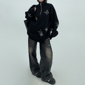 ハーフジップ オーバーサイズ スウェット ◆2col L00293