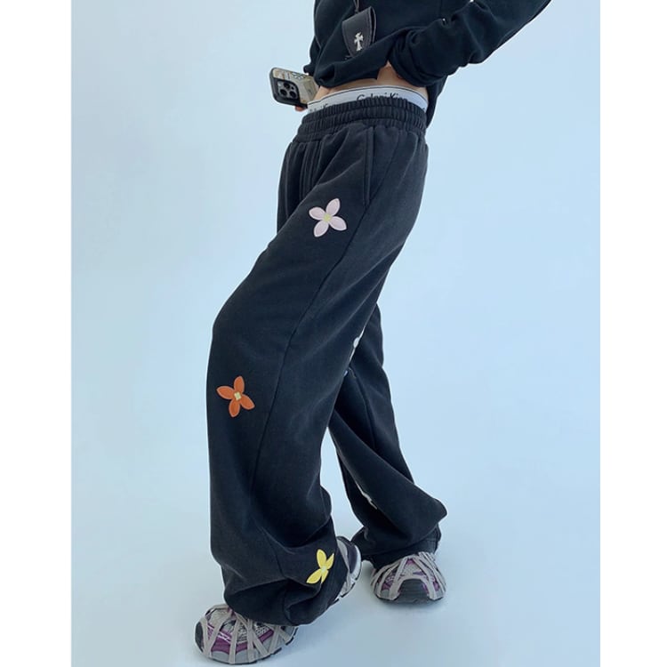 リラックスムード漂う、花柄ワイドストレートスウェットパンツ。