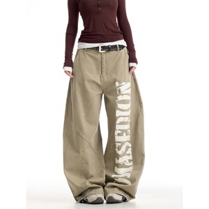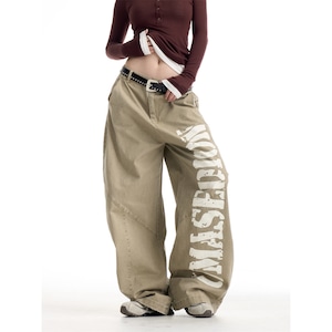 プリント入り ワイドレッグ フルレングス パンツ L00320