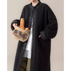 ボア襟 ボタンフロント ロング コート ◆2col L00338