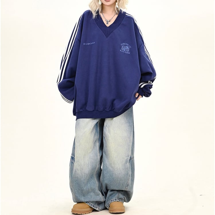 Vネック オーバーサイズ スウェット ◆2col L00346