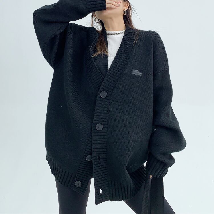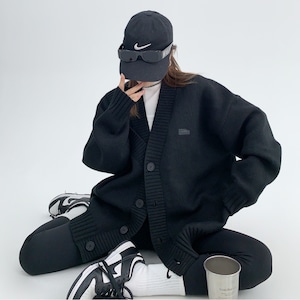 ゆったりとしたシルエットが魅力の長袖ニットカーディガン。