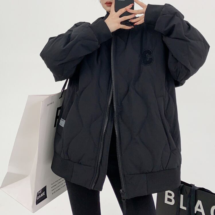 シンプルなデザインで、どんなスタイルにも合わせやすいキルティングジャケットです。