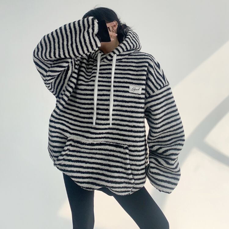 カジュアルな着こなしにぴったりのボーダー柄スウェットシャツ。