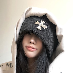 存在感あるメタルクロスピンをあしらった、ストリートモードなニットビーニー。