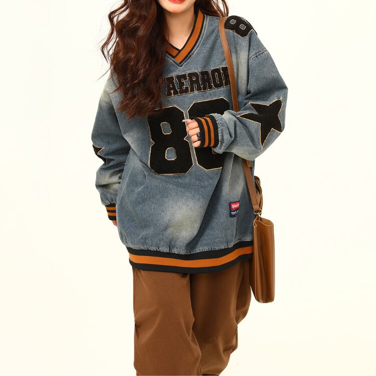 Vネック 長袖 ドロップショルダー オーバーサイズ スウェット L00177