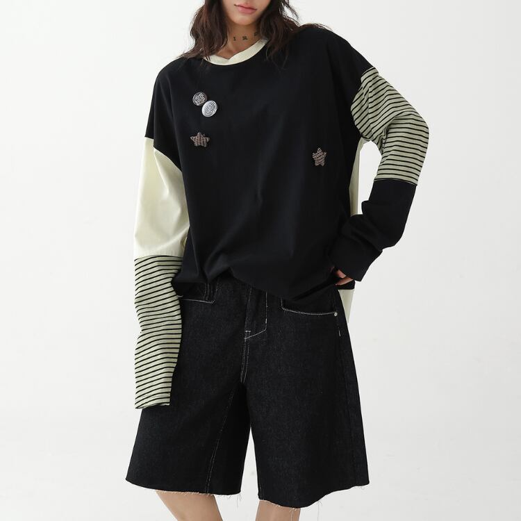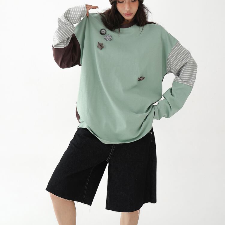 配色 ドロップショルダー Tシャツ ◆2col L00381
