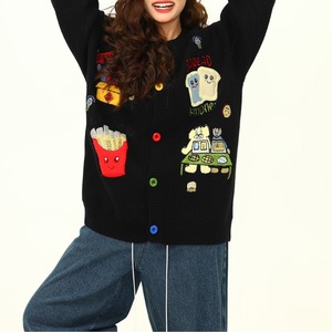 遊び心あふれるプリントが目を引く、ニットカーディガン。