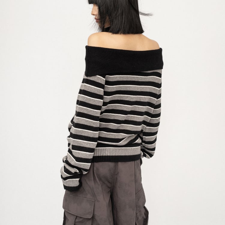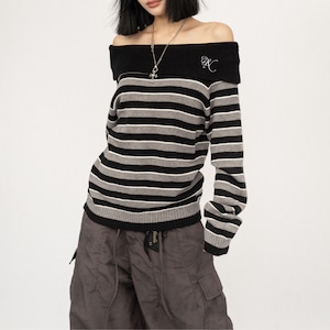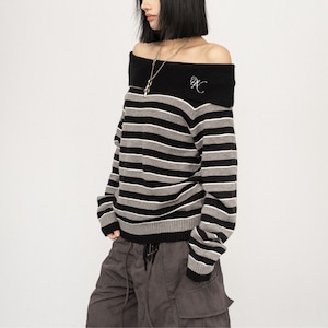 オフショルダーデザインのニットトップス L00392