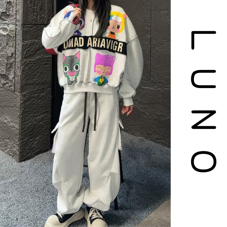 ポップなキャラクタープリントが目を惹くスウェットセットアップ。