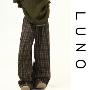 落ち着いたブラウンベースのチェック柄が印象的なワイドパンツ。