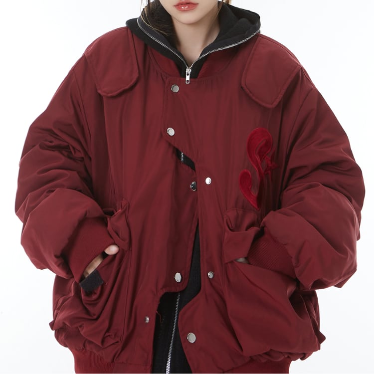 胸元の立体ワッペン刺繍がポイントのオーバーサイズブルゾン。