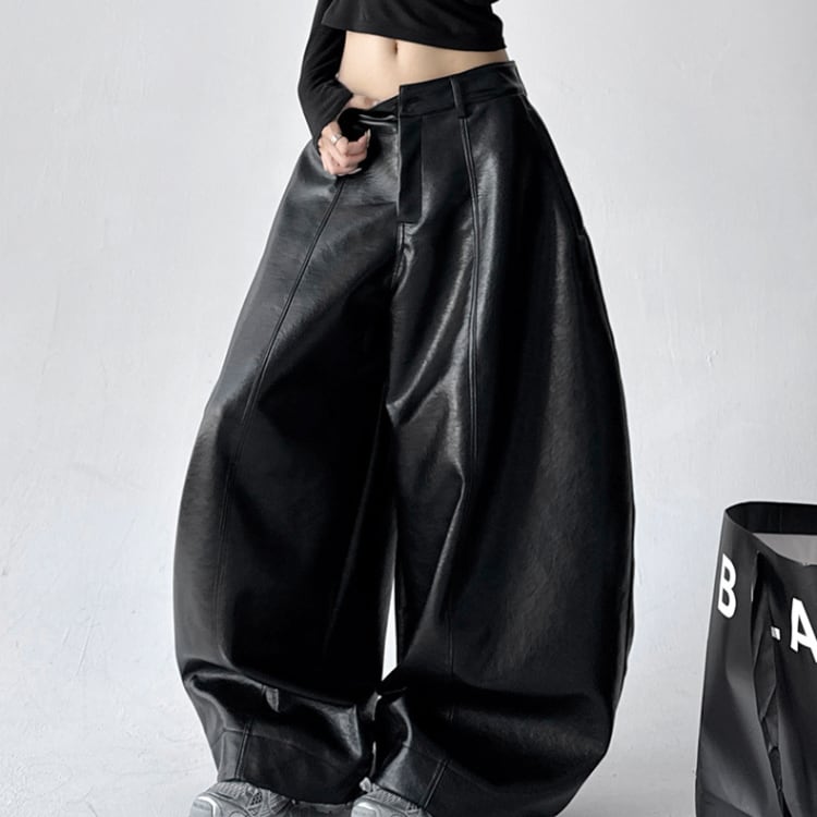 立体感のあるフォルムが魅力の、ボリュームワイドシルエットレザーパンツ。